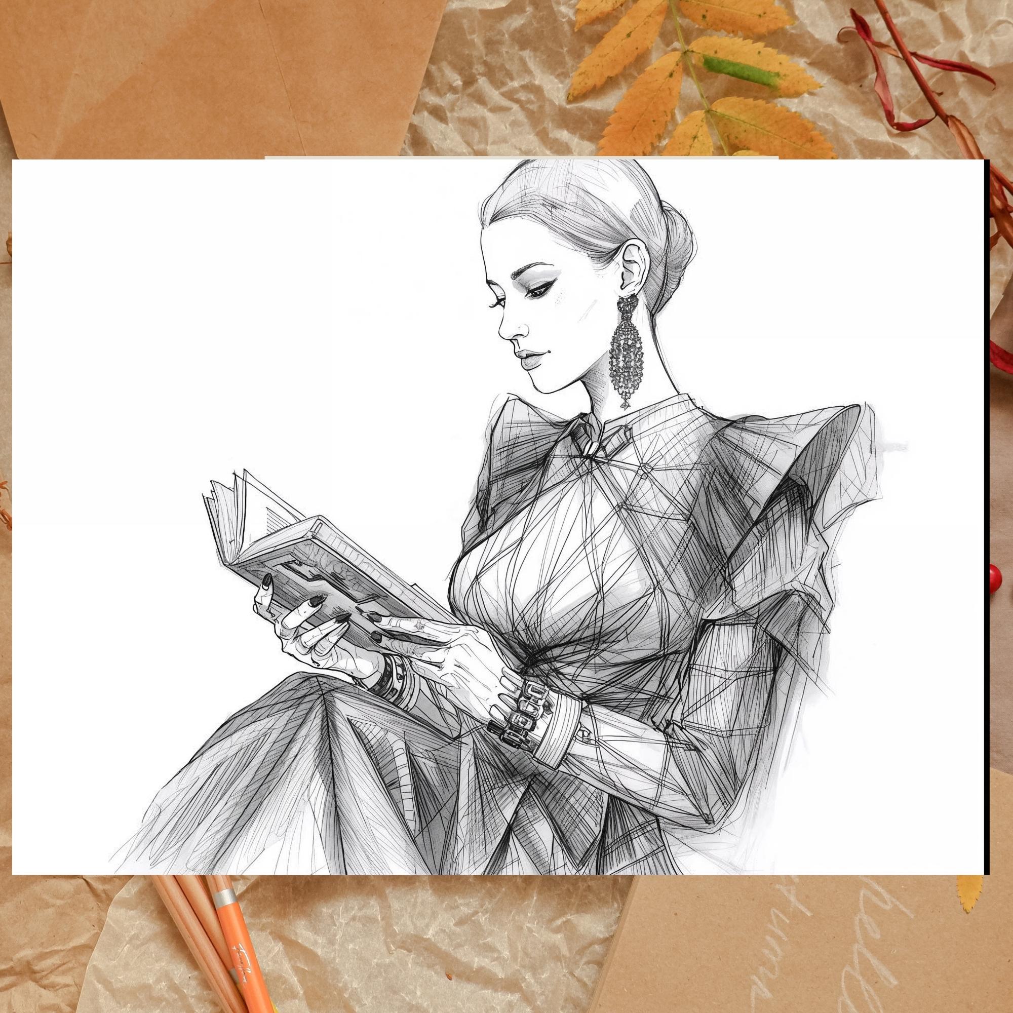 * Five high-resolution PDF prints featuring minimalist sketch art of book lovers and cozy reading scenes