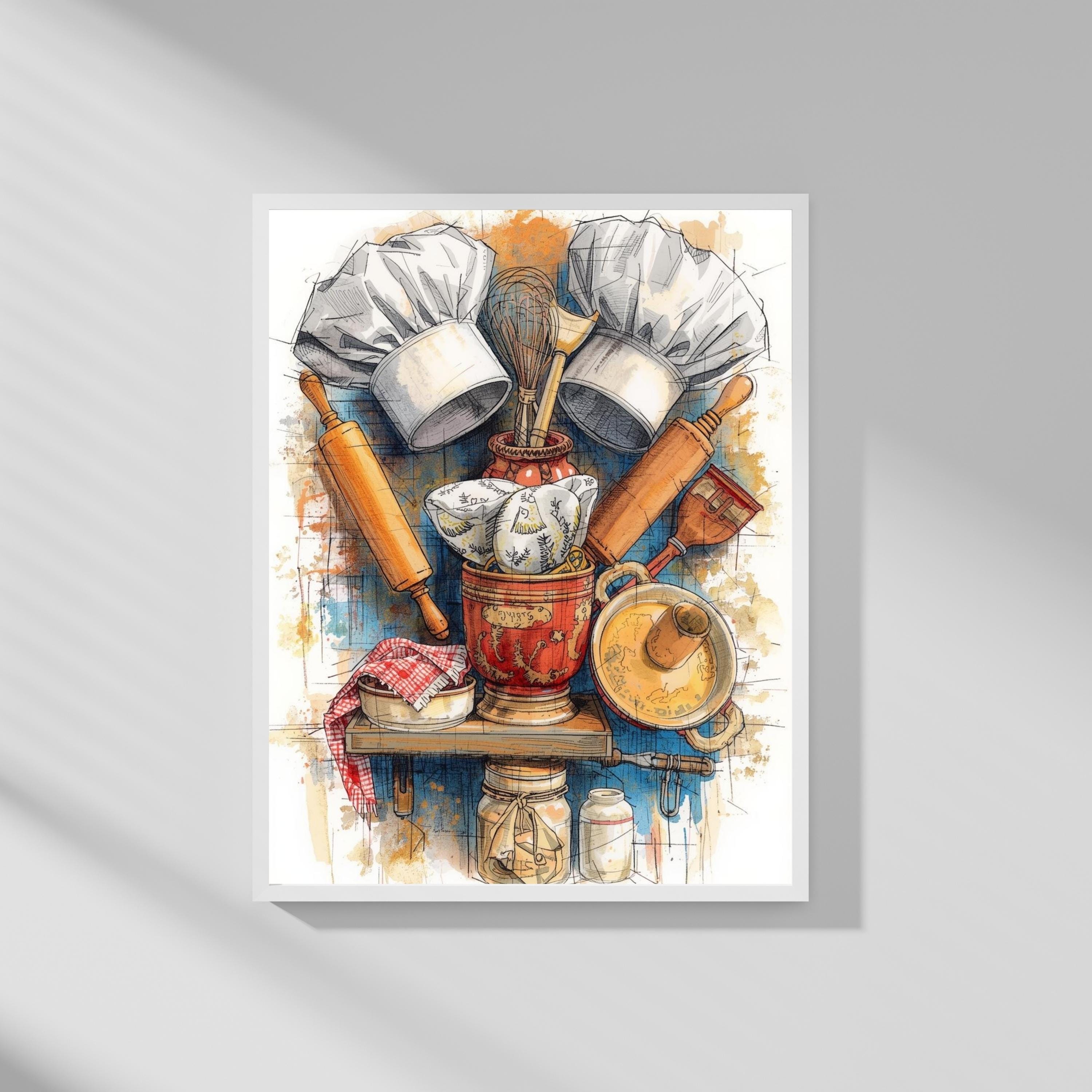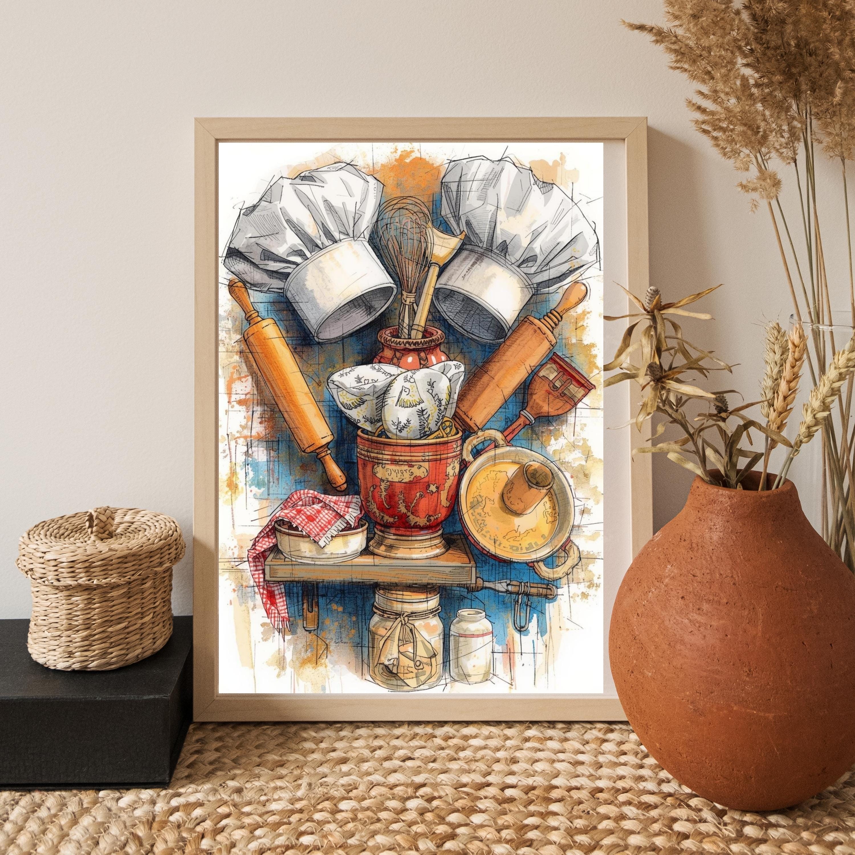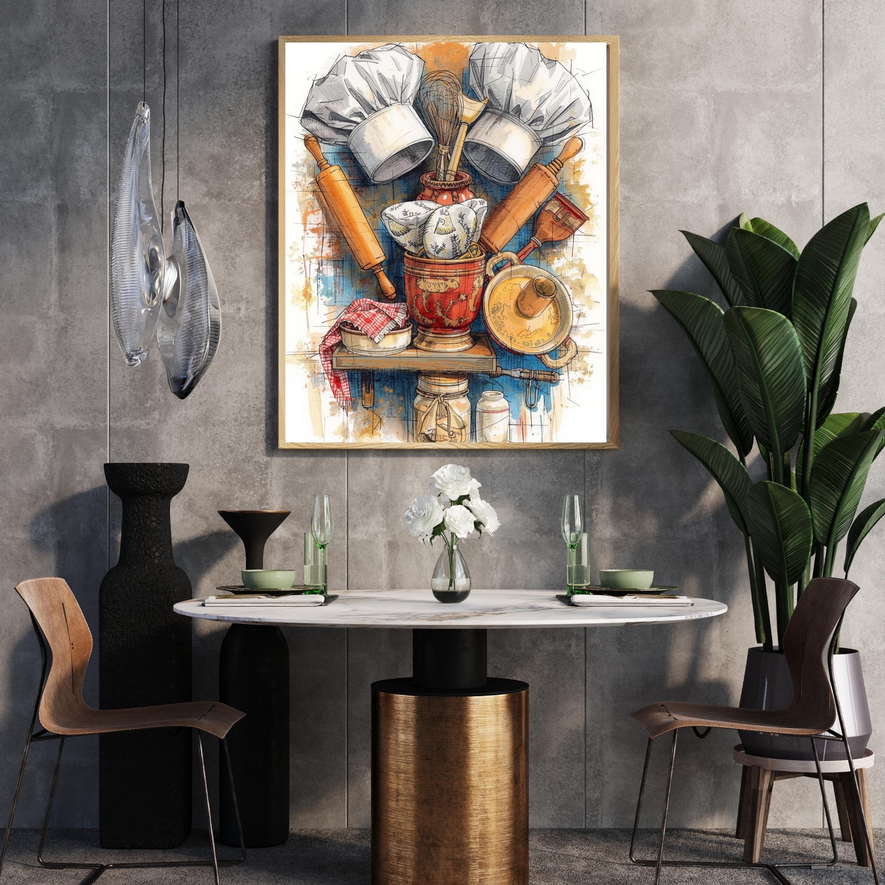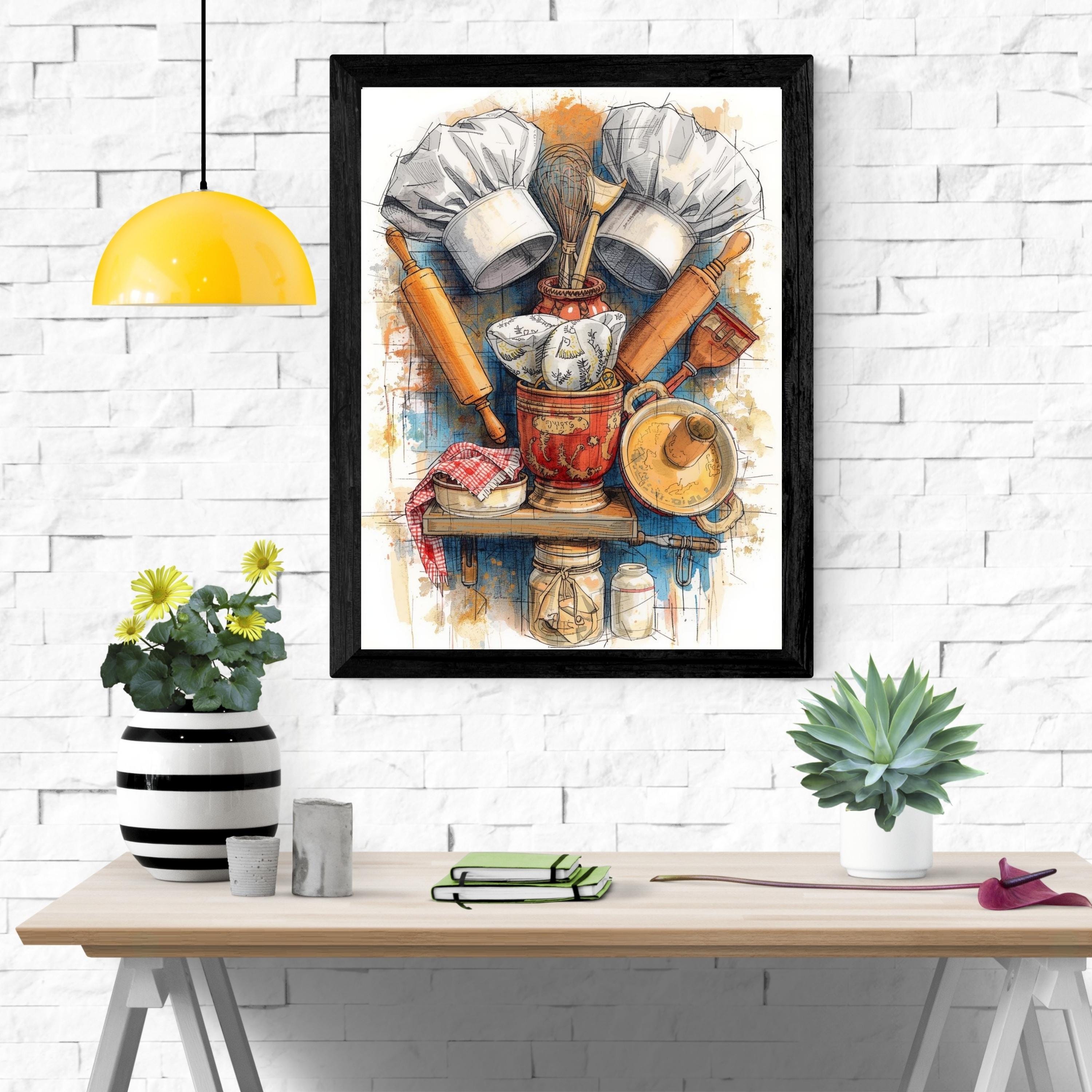 Bring charm and style to your kitchen with this printable kitchen decor art digital download. Perfect for home kitchens cafes, digital kitchen poster, or restaurants, this chef hat kitchen wall art combines modern and vintage aesthetics to create a warm and inviting atmosphere.Culinary art print.