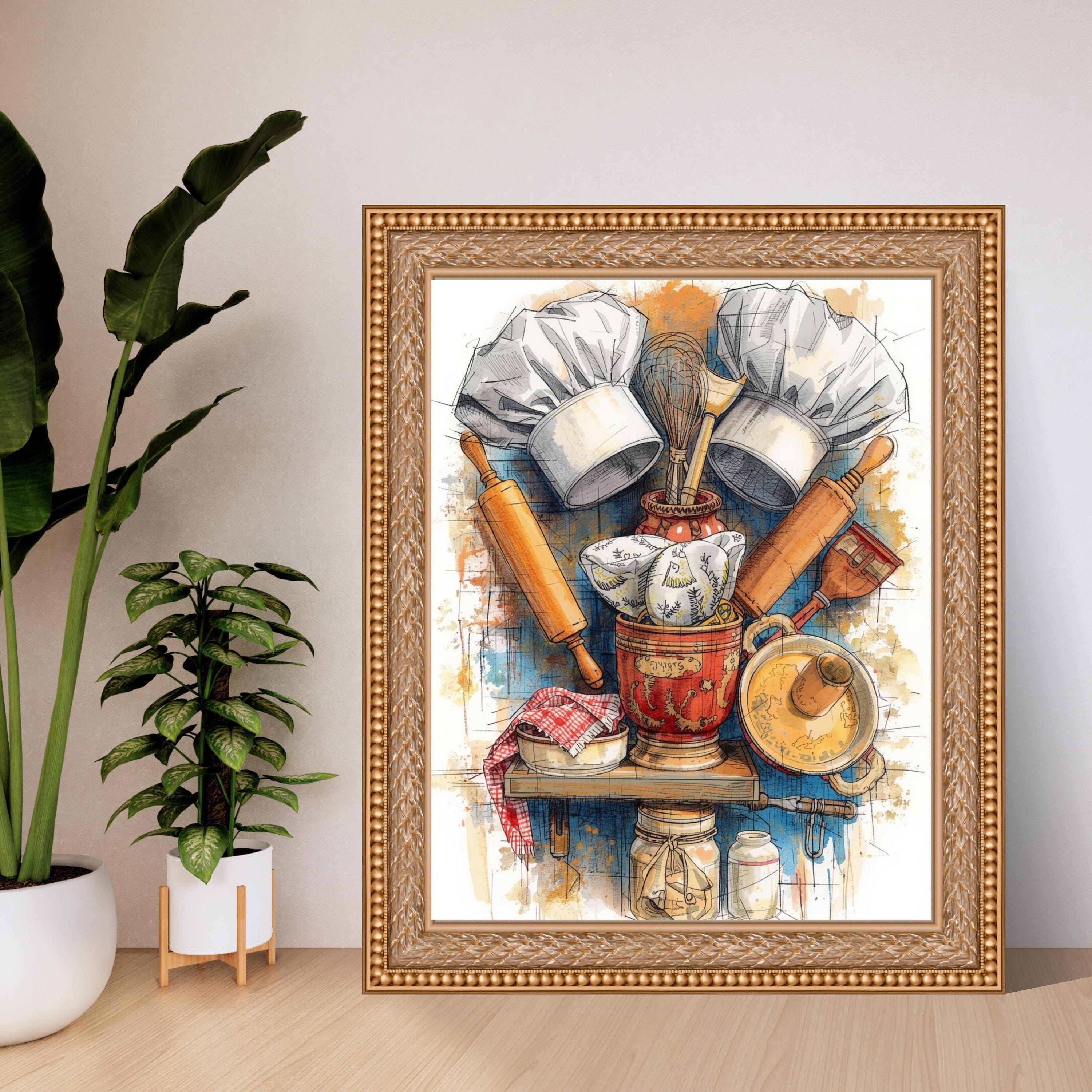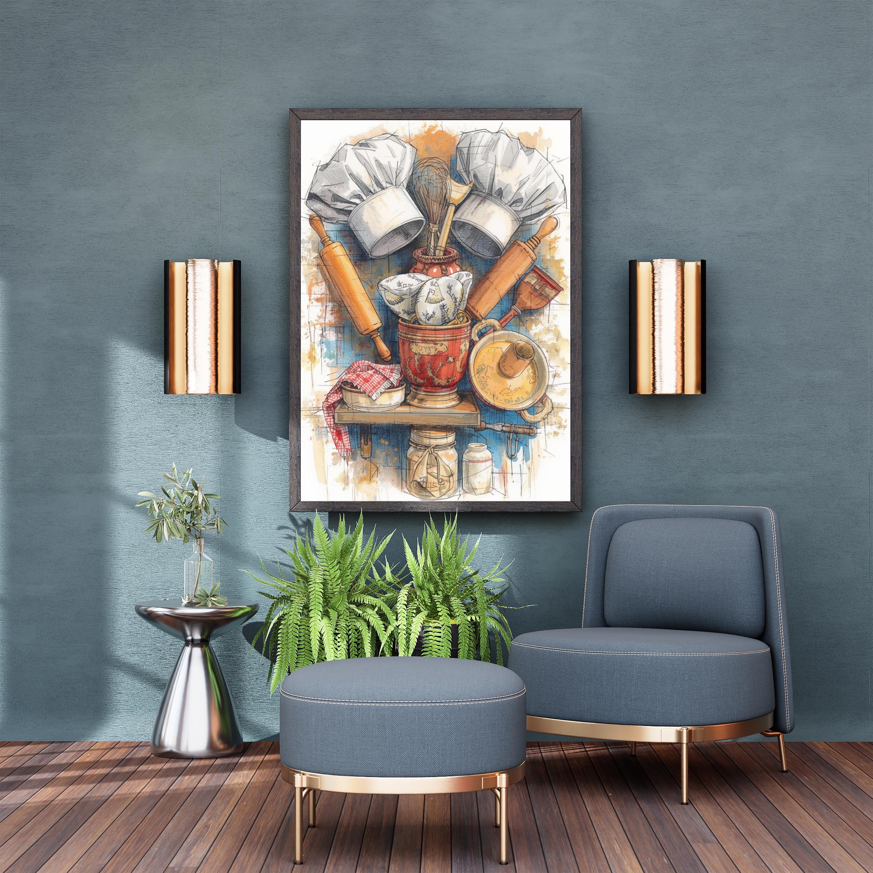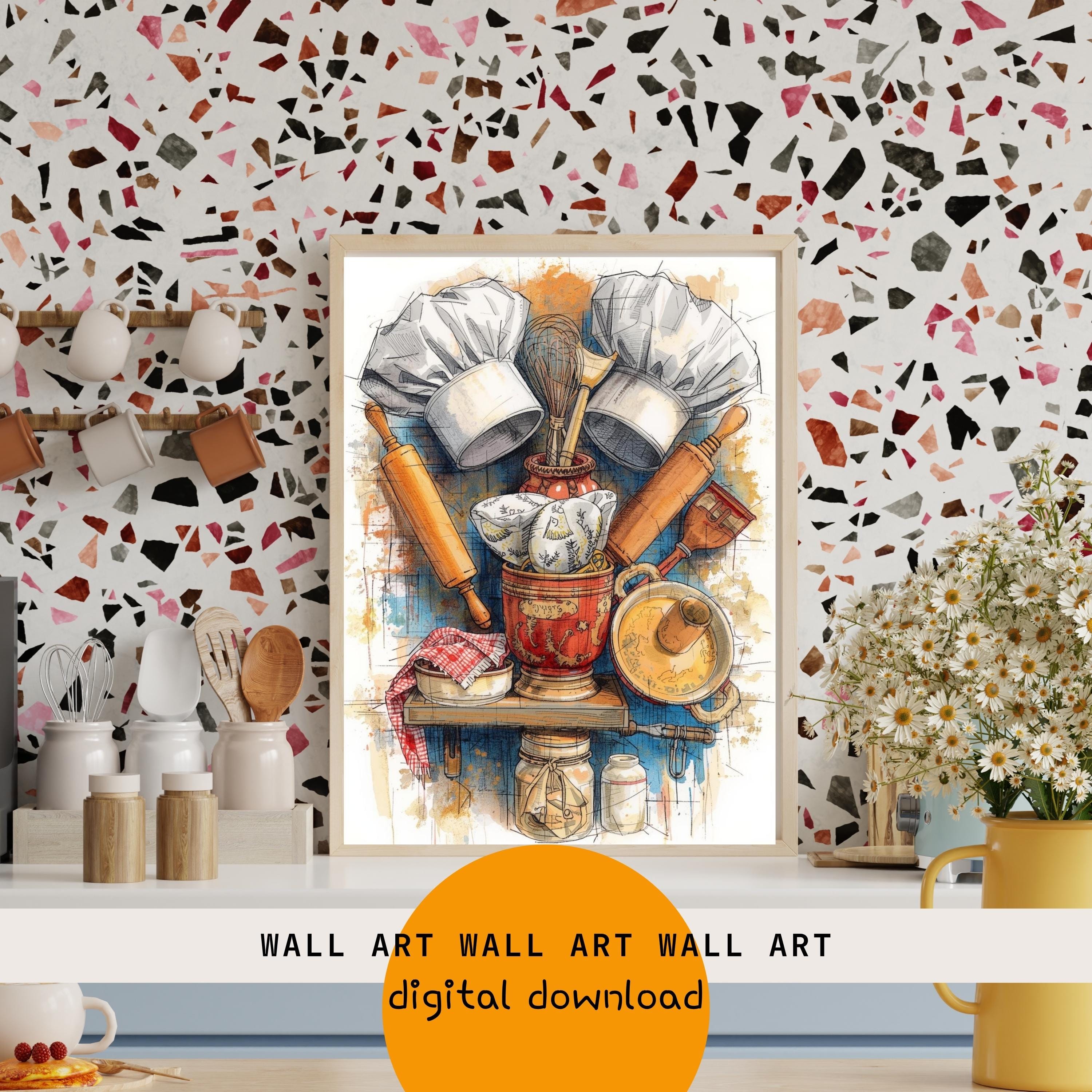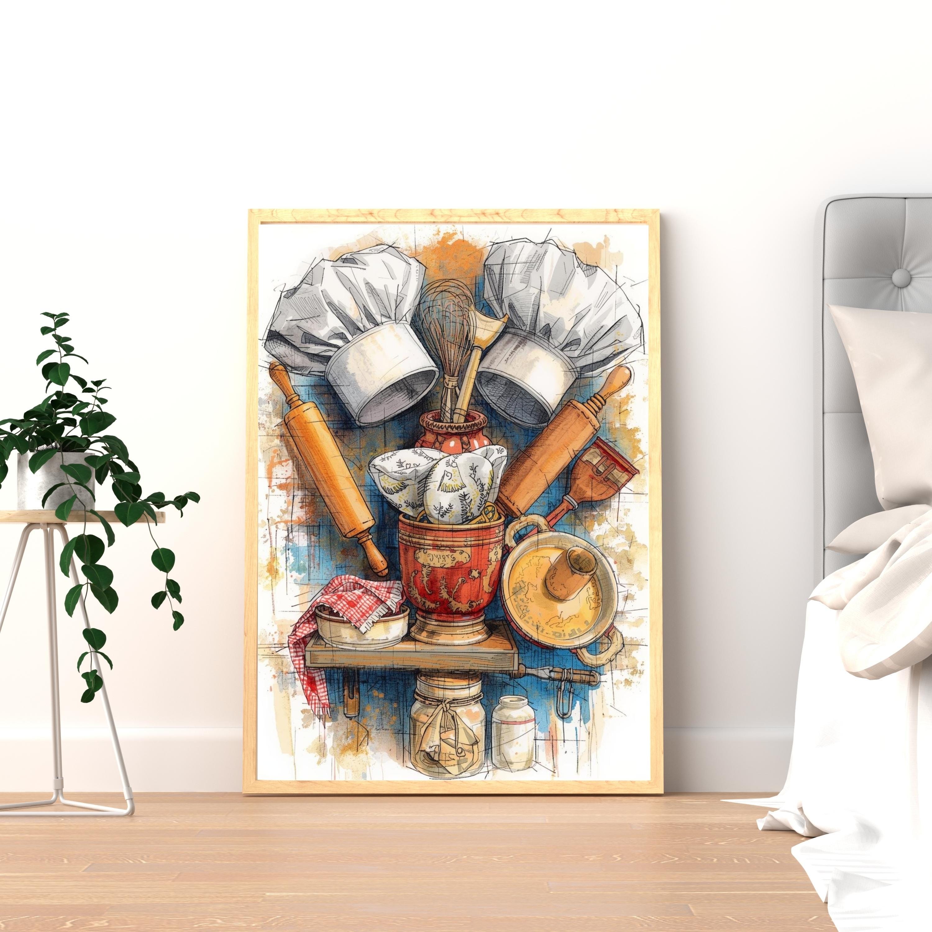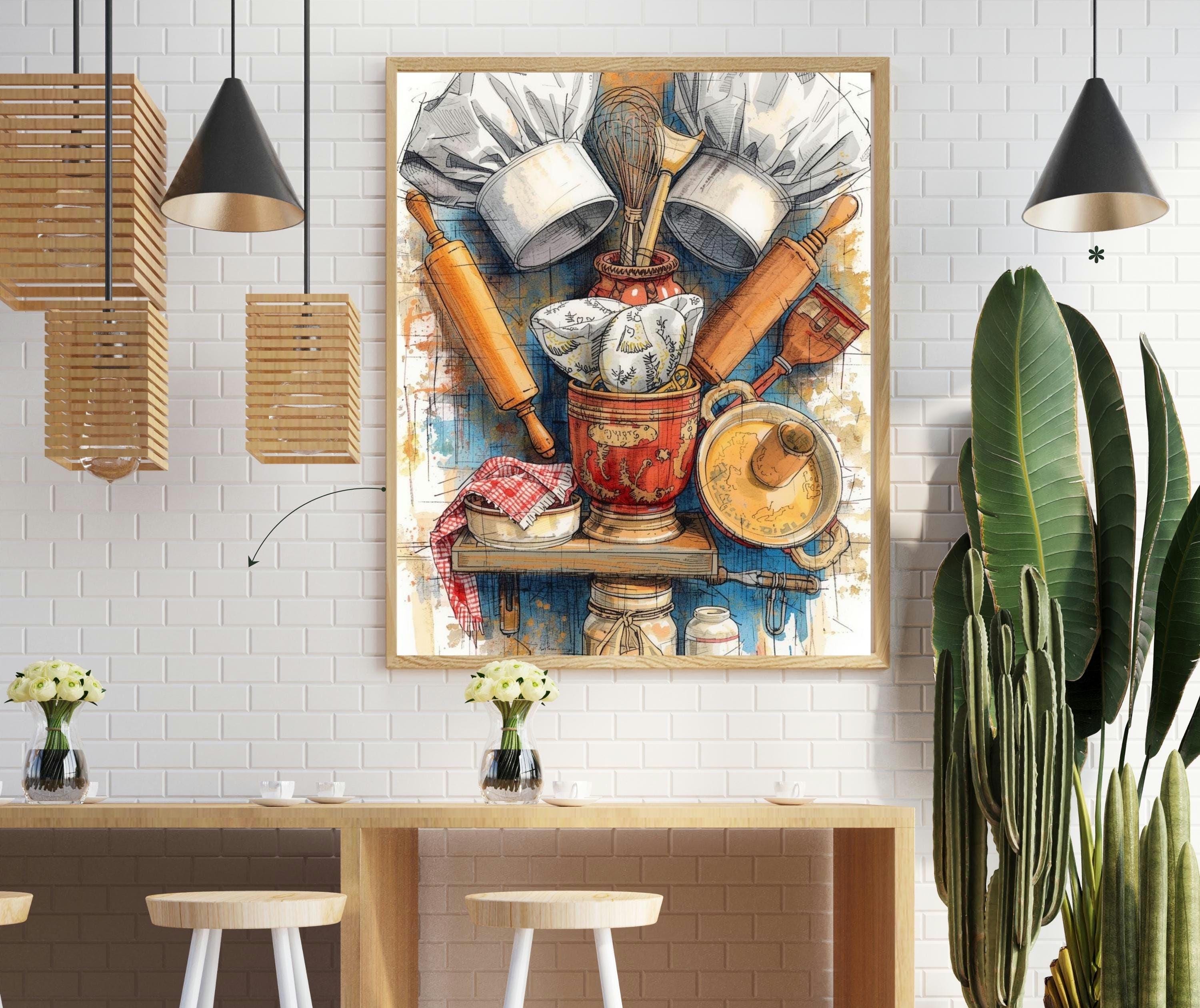 Bring charm and style to your kitchen with this printable kitchen decor art digital download. Perfect for home kitchens cafes, digital kitchen poster, or restaurants, this chef hat kitchen wall art combines modern and vintage aesthetics to create a warm and inviting atmosphere.Culinary art print.