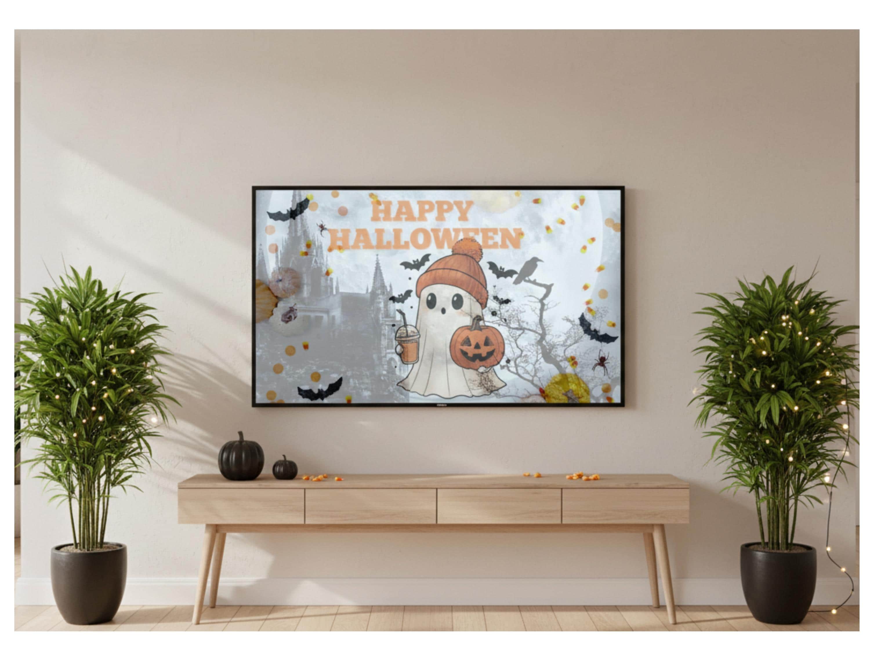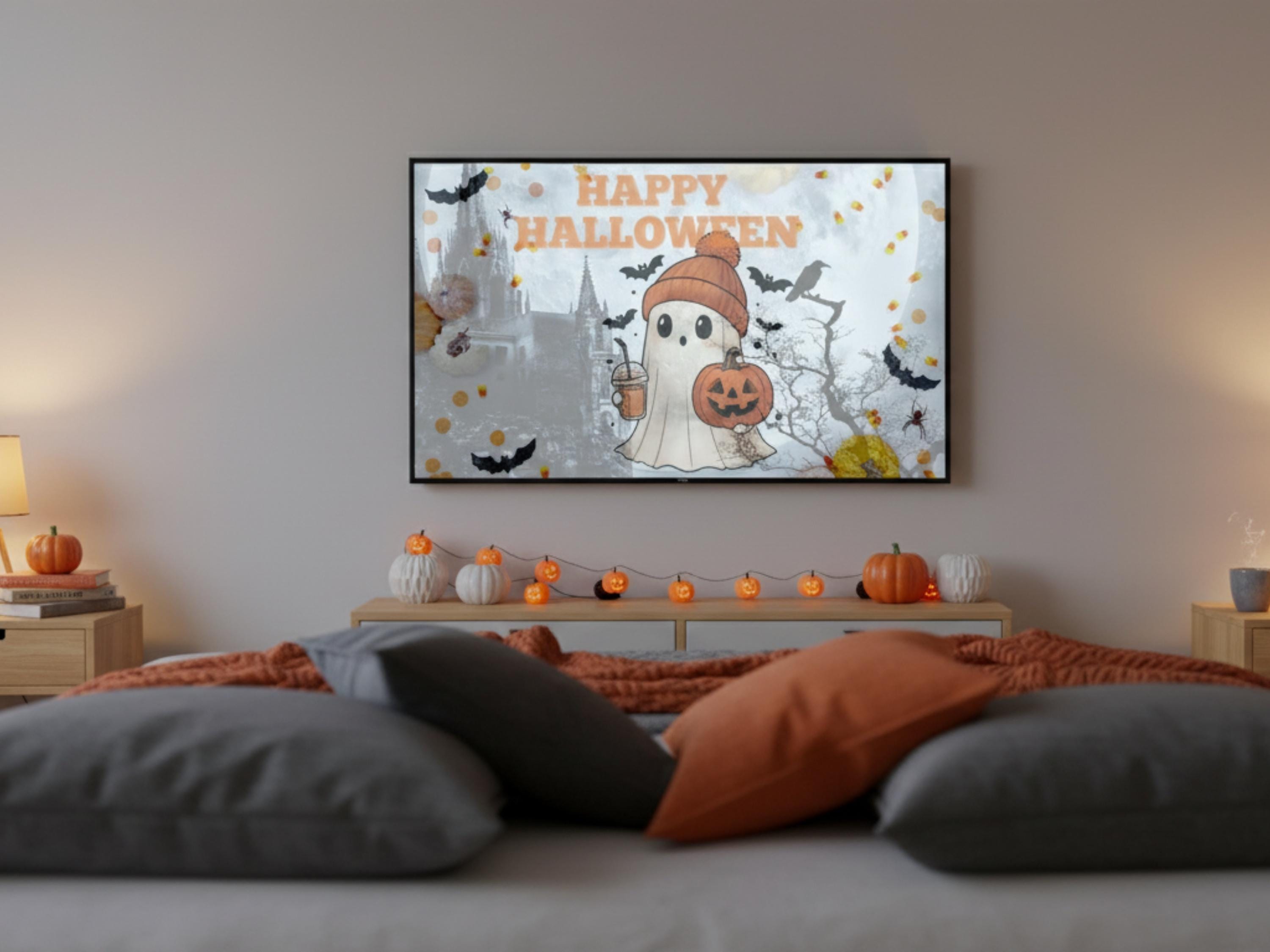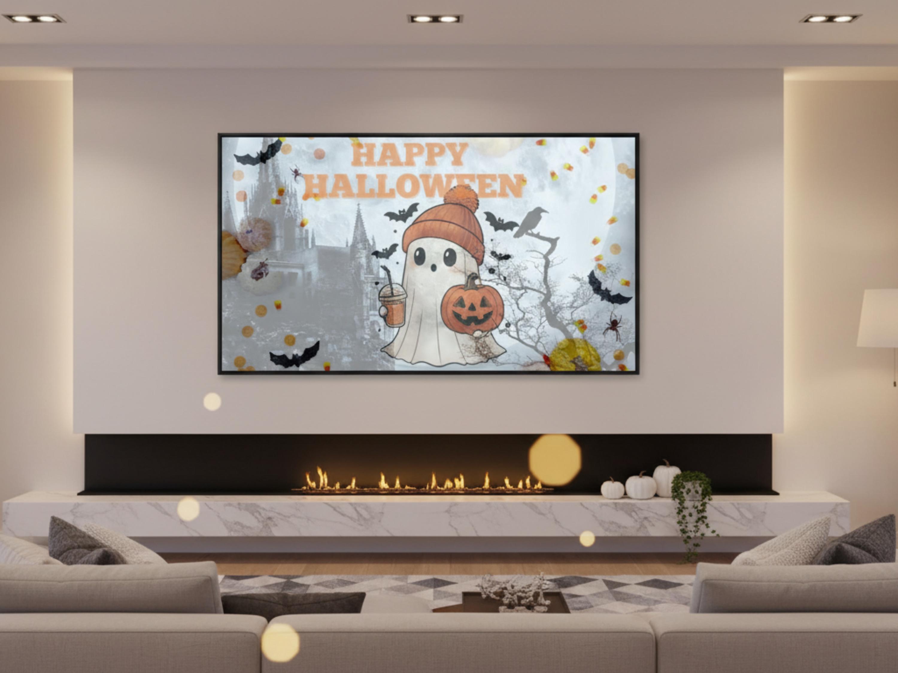 Personalize your Samsung Frame TV with this adorable Halloween ghost art and bring the Halloween spirit into your home! Download now!