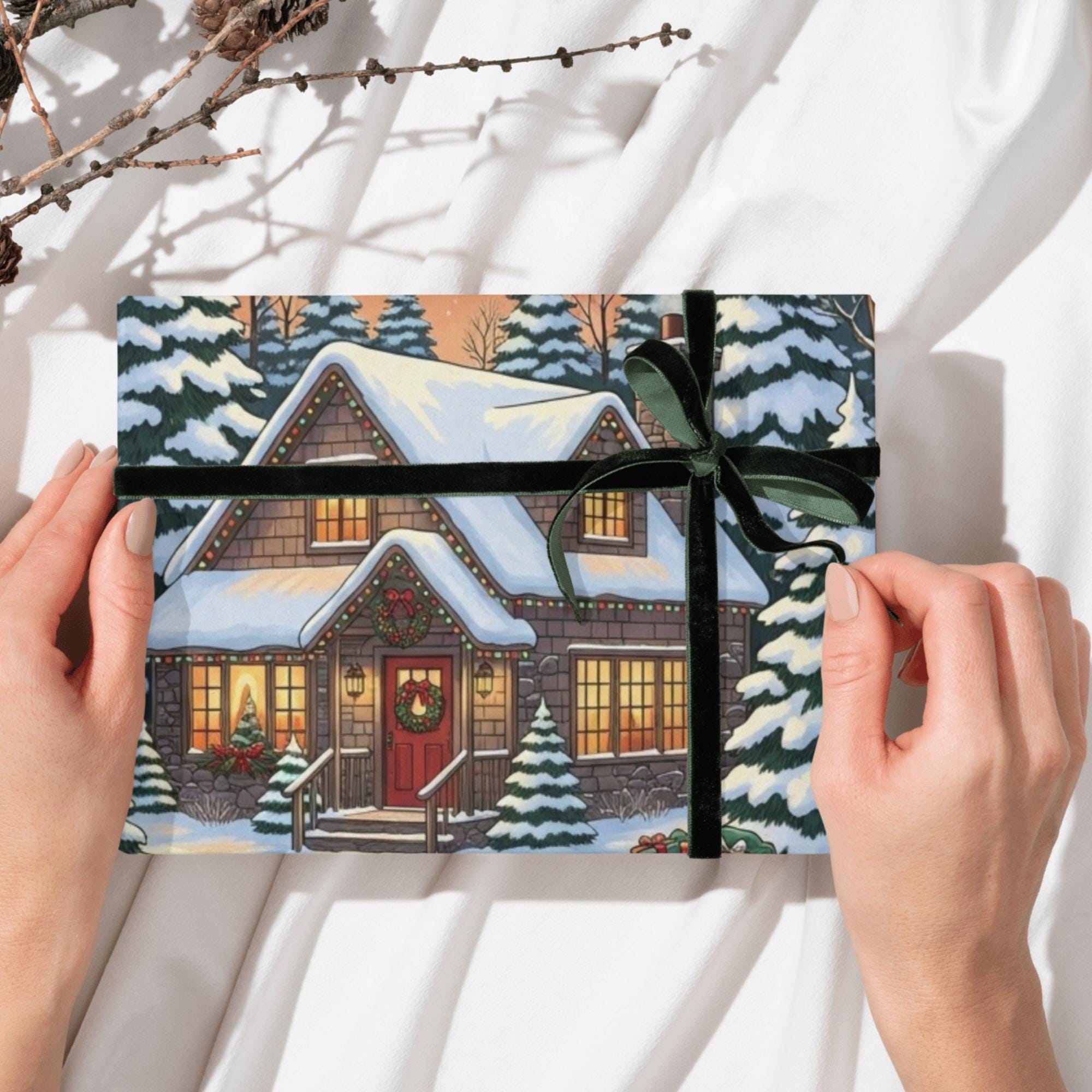 Bring a cozy holiday feeling to your home with this Christmas Cottage Wall Art — a snowy winter landscape perfect for creating warm, festive vibes.