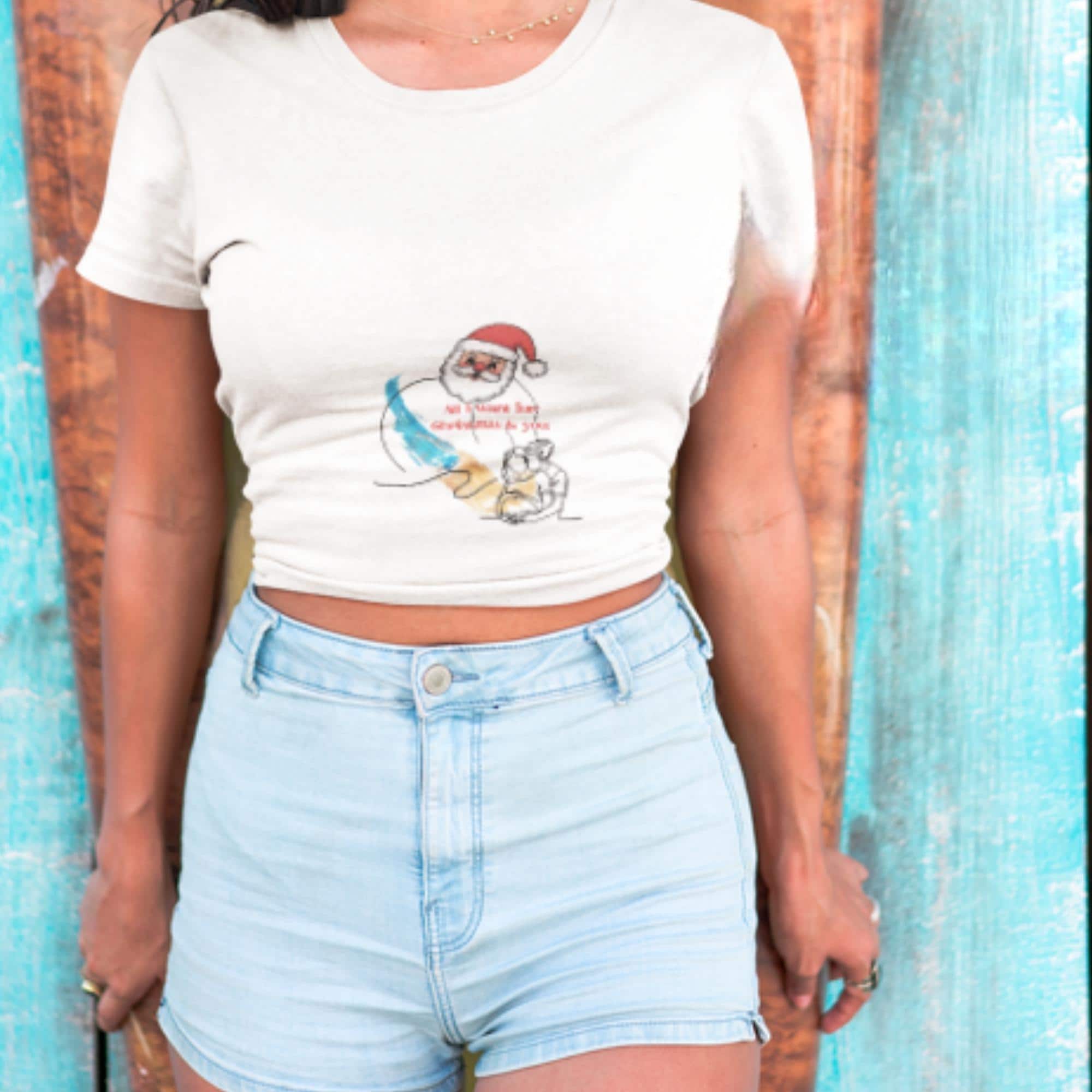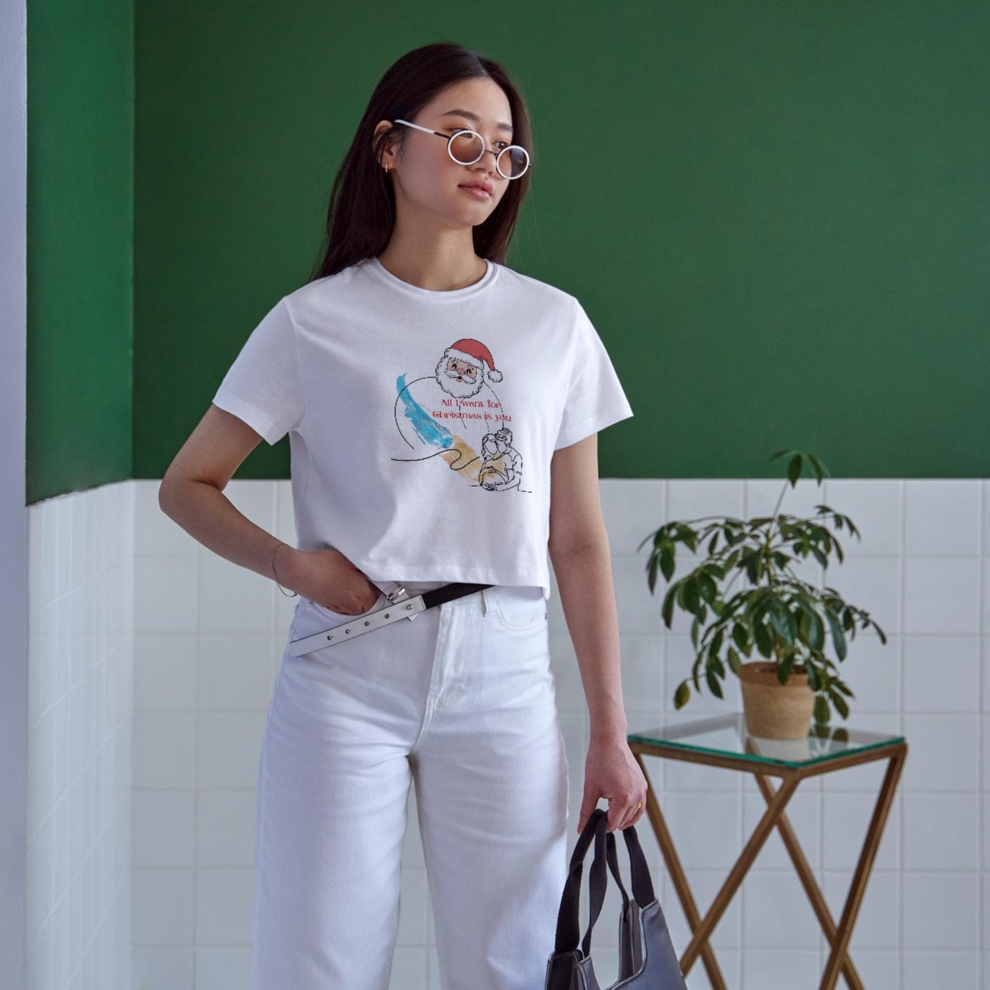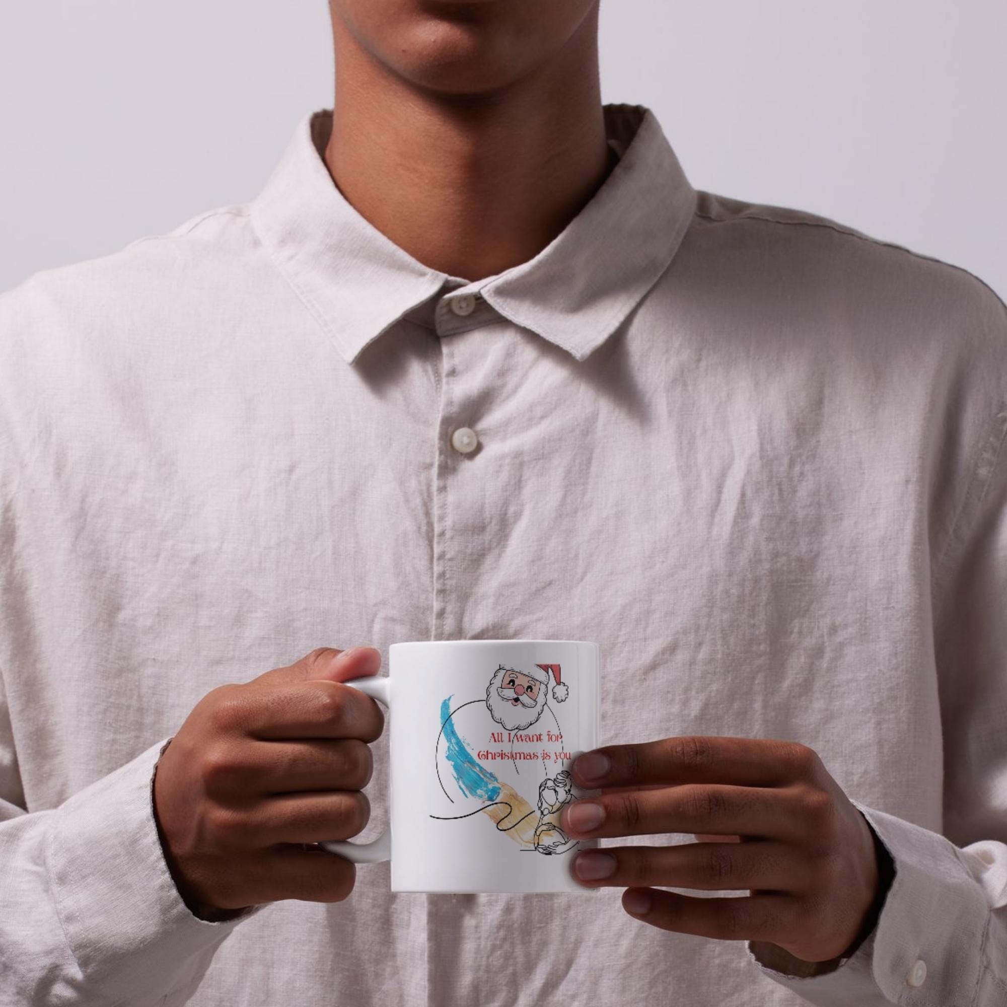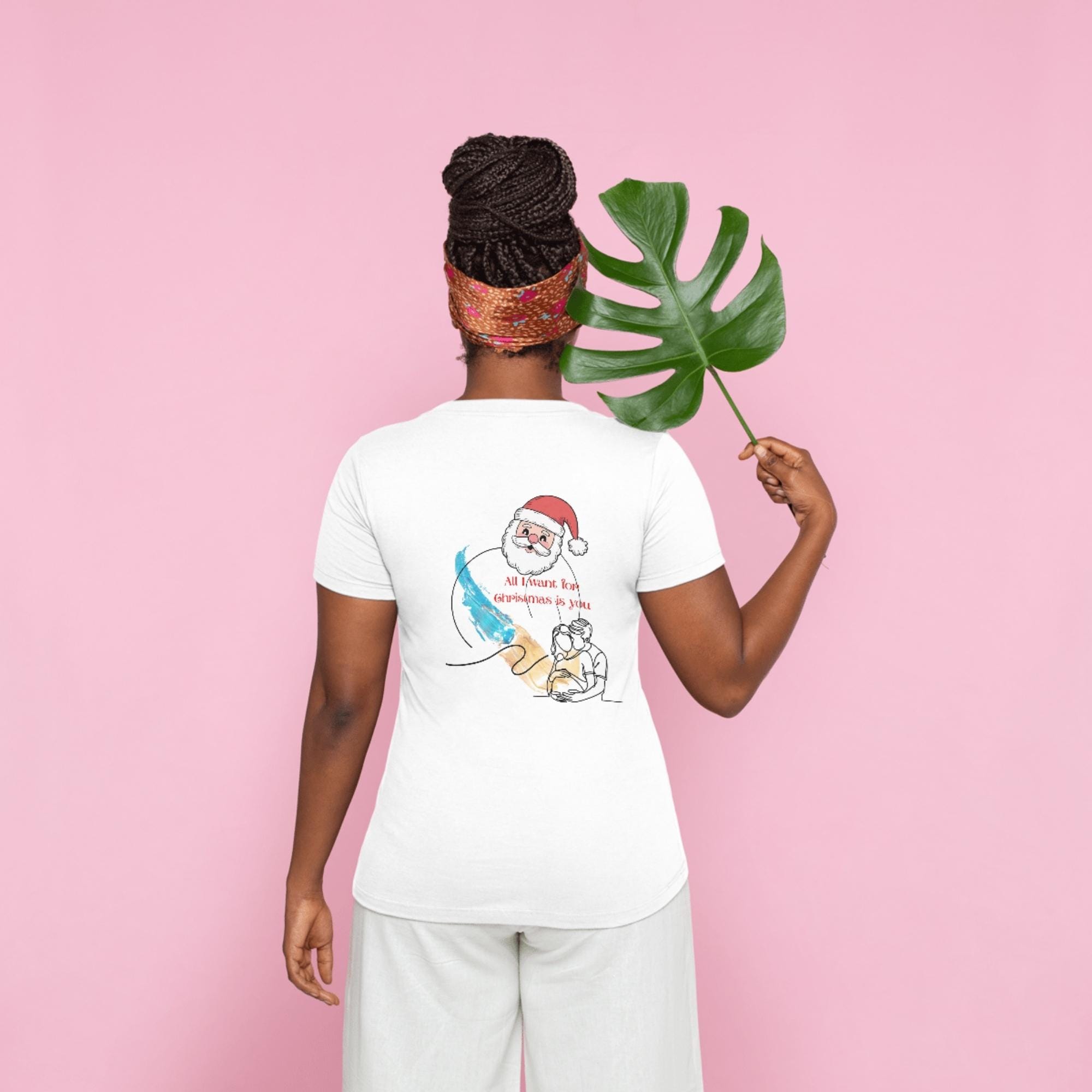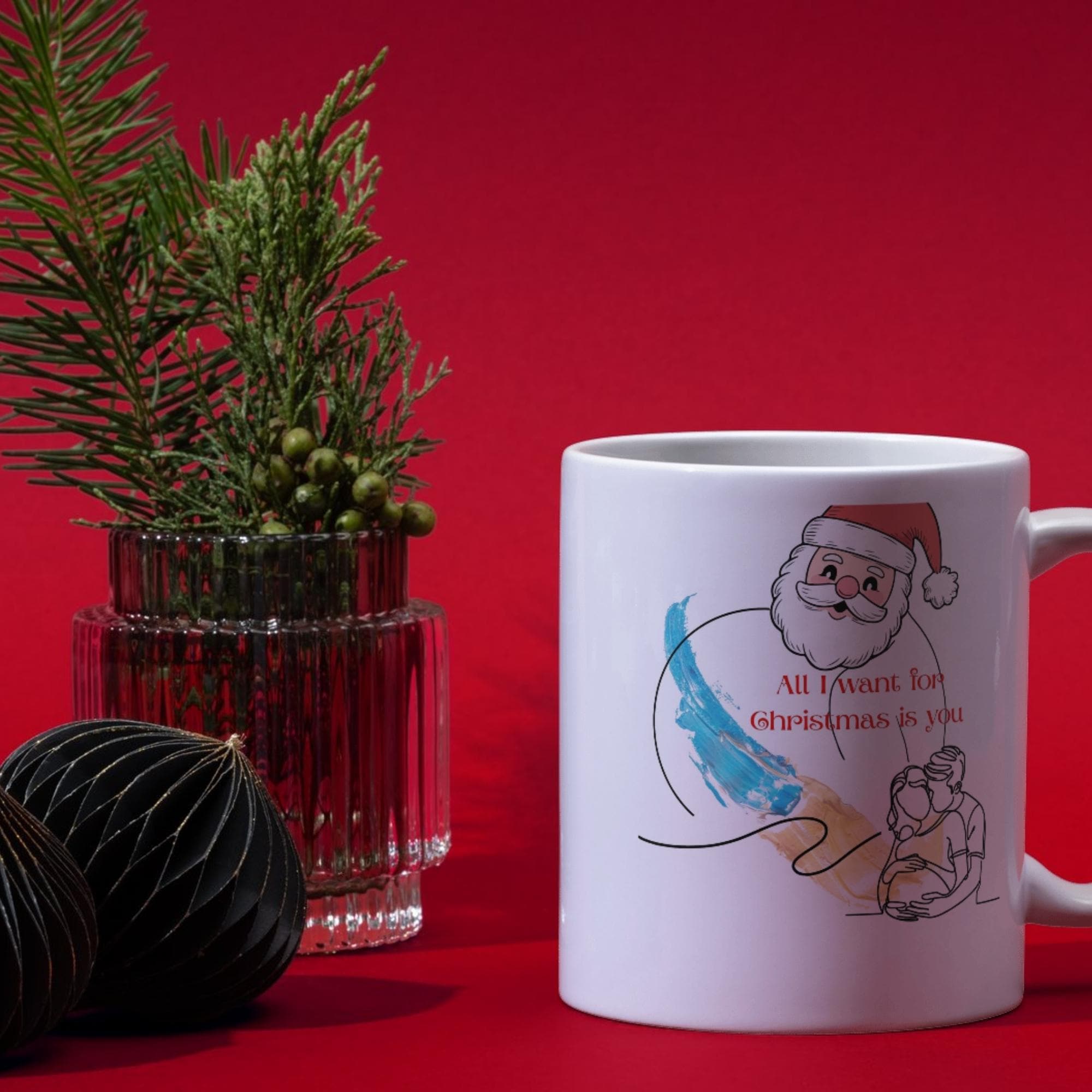 the magic of the season with this adorable “All I Want for Christmas Is You” design featuring a sweet pregnant couple, modern line-art style, soft paint strokes, and a cute Santa illustration.