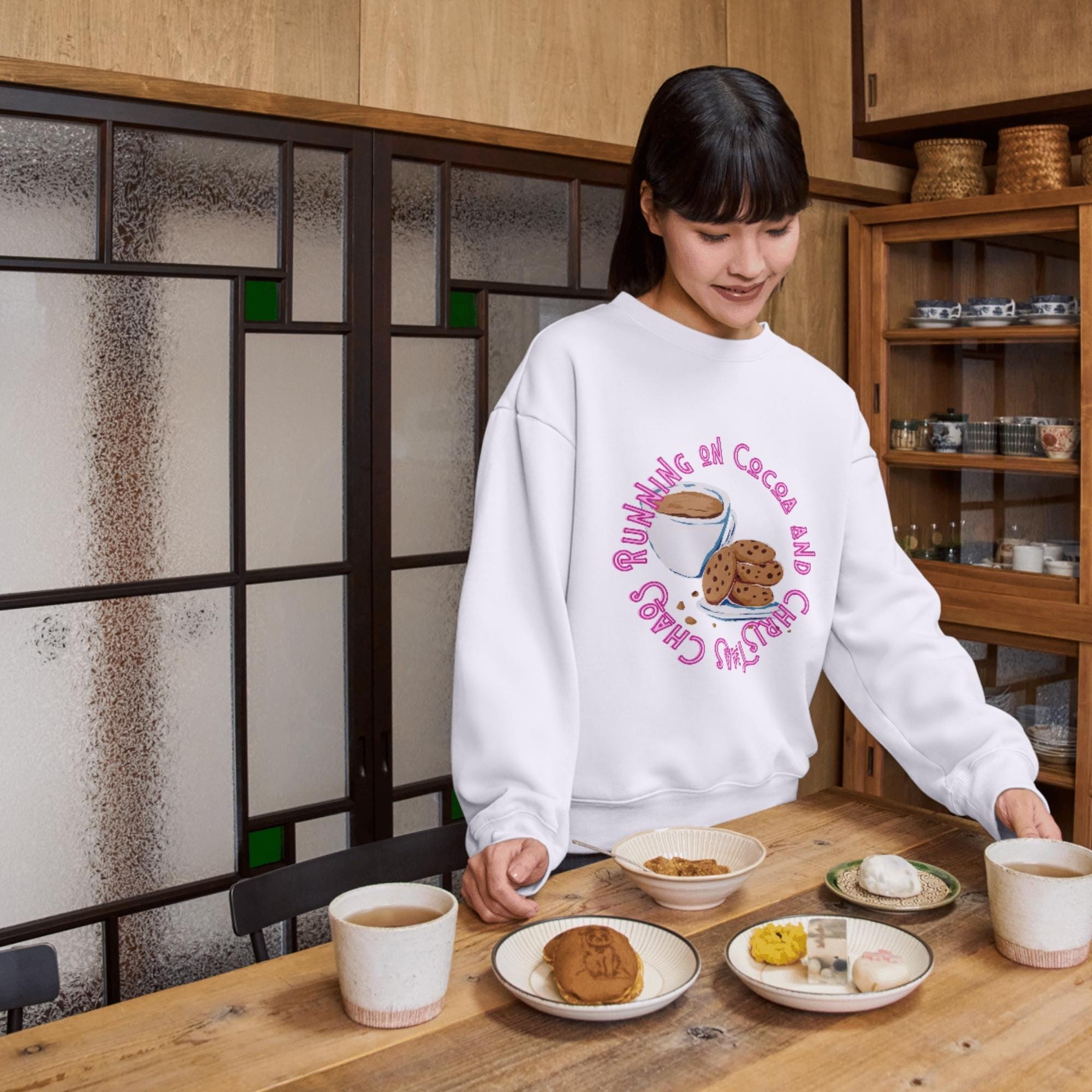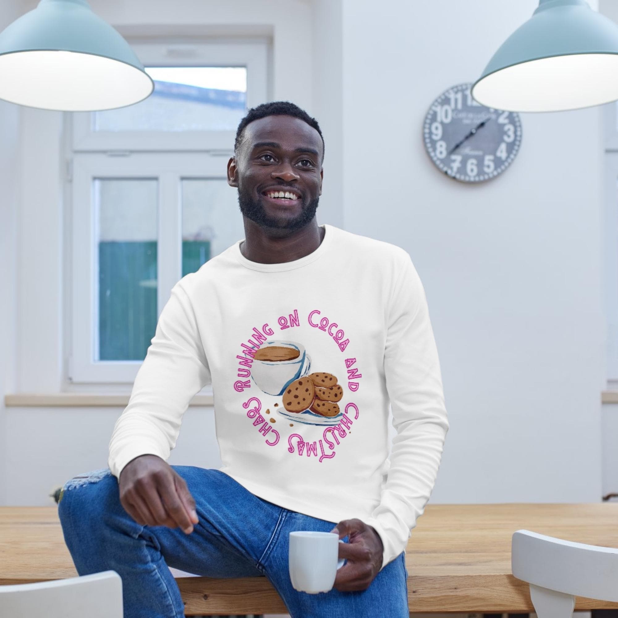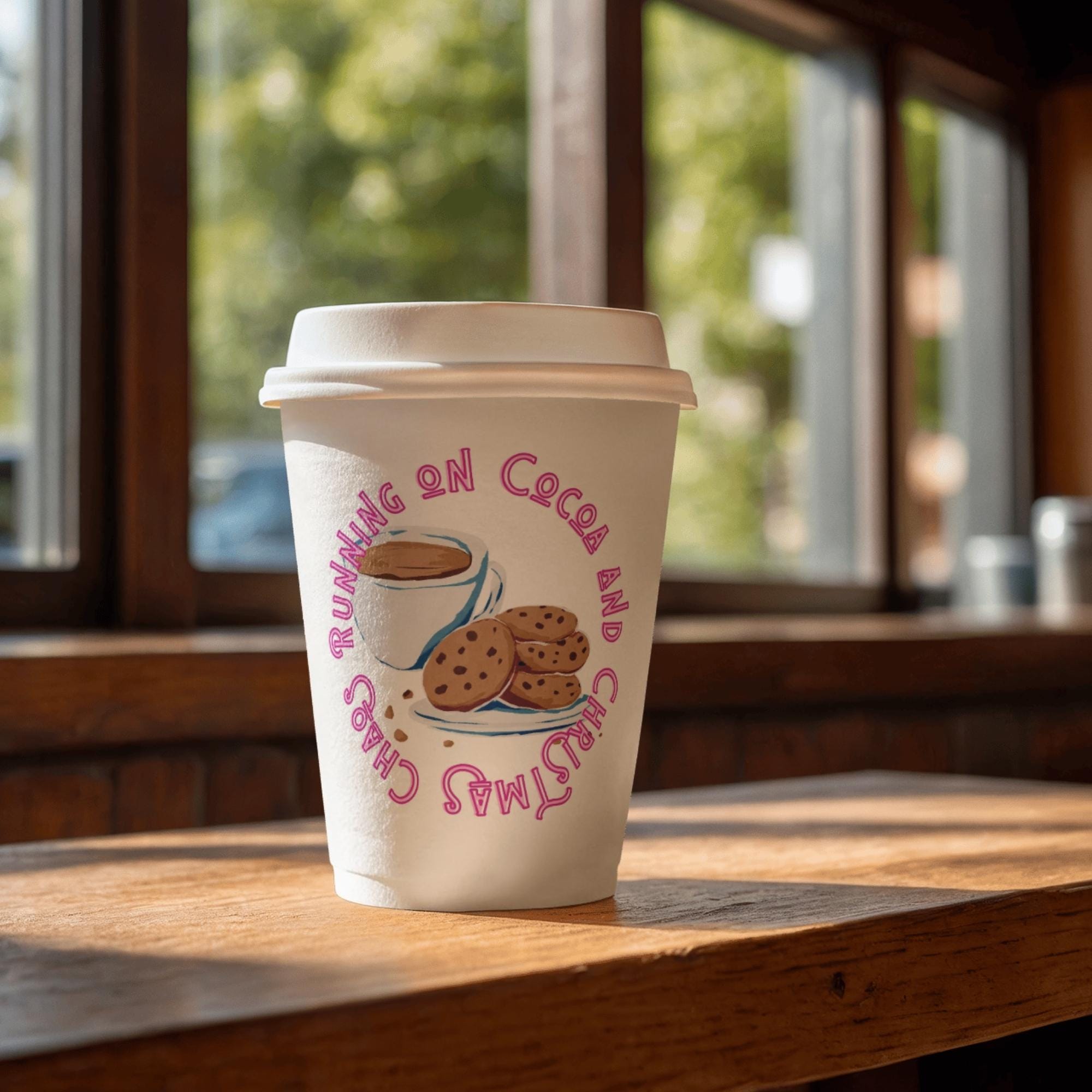 Bring cozy holiday vibes to your creations with this adorable “Running on Cocoa and Christmas png Chaos” design! Perfect for Christmas png mugs, t-shirts, wall art, gifts, and sublimation projects.