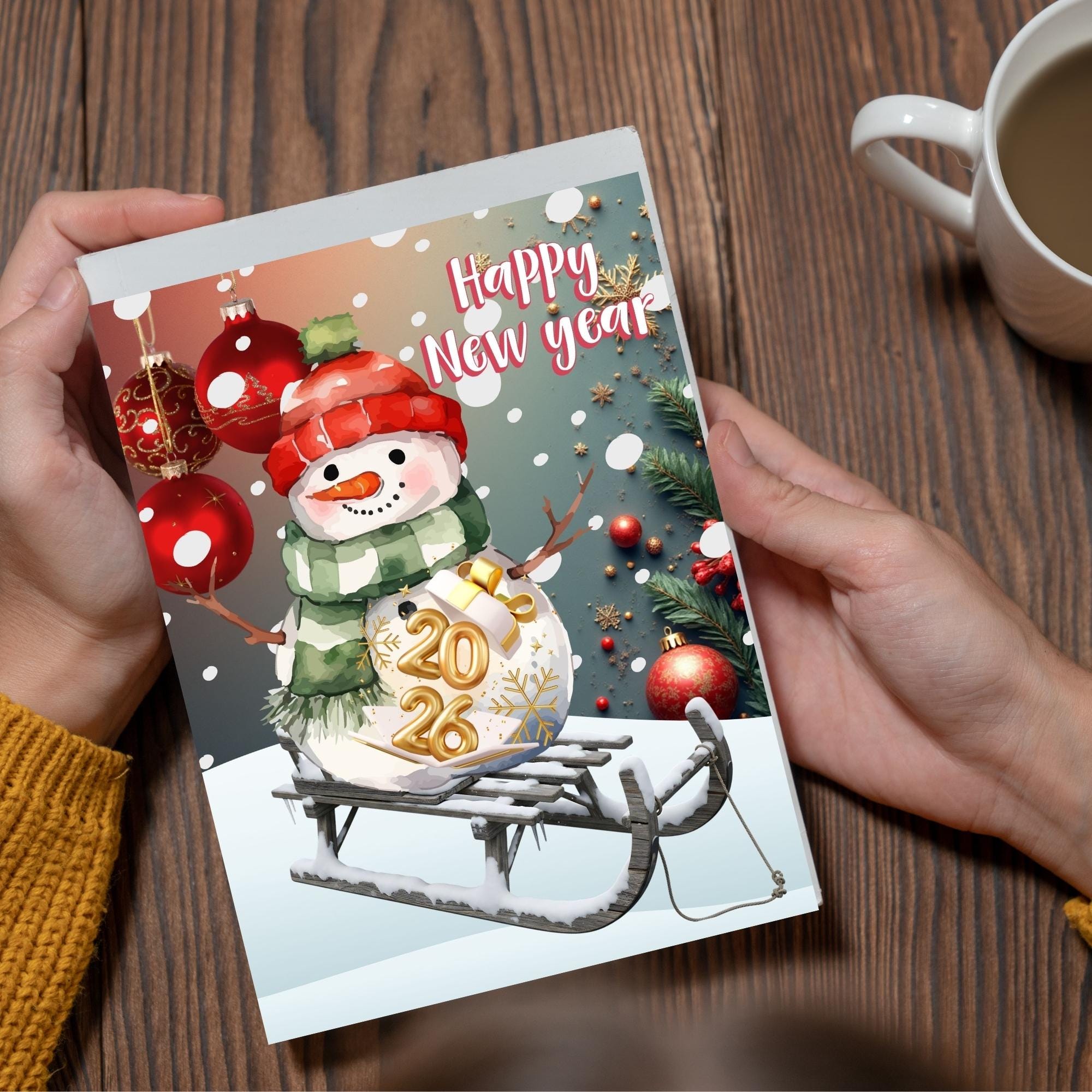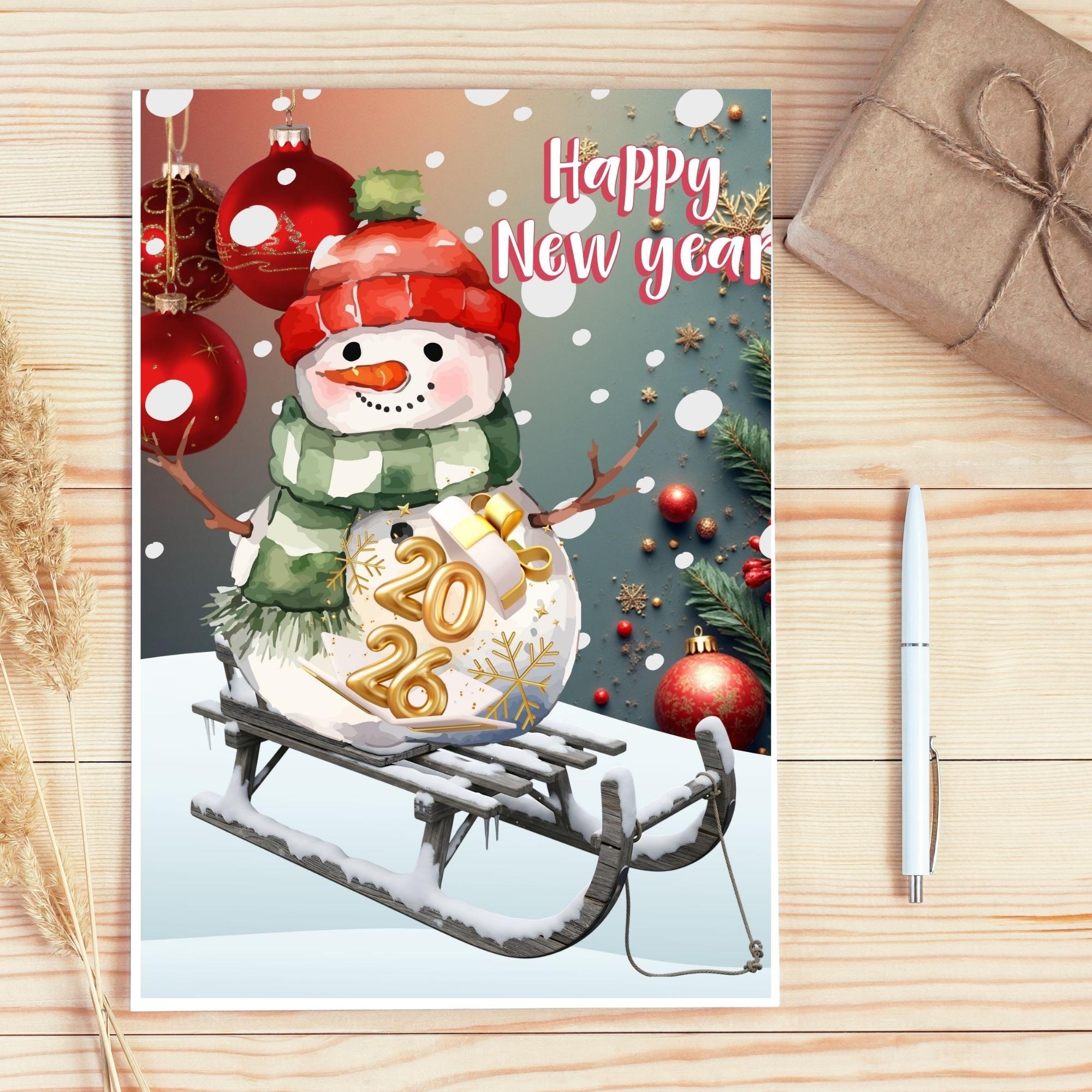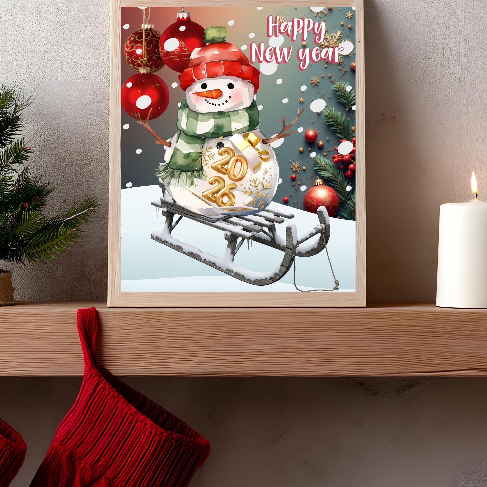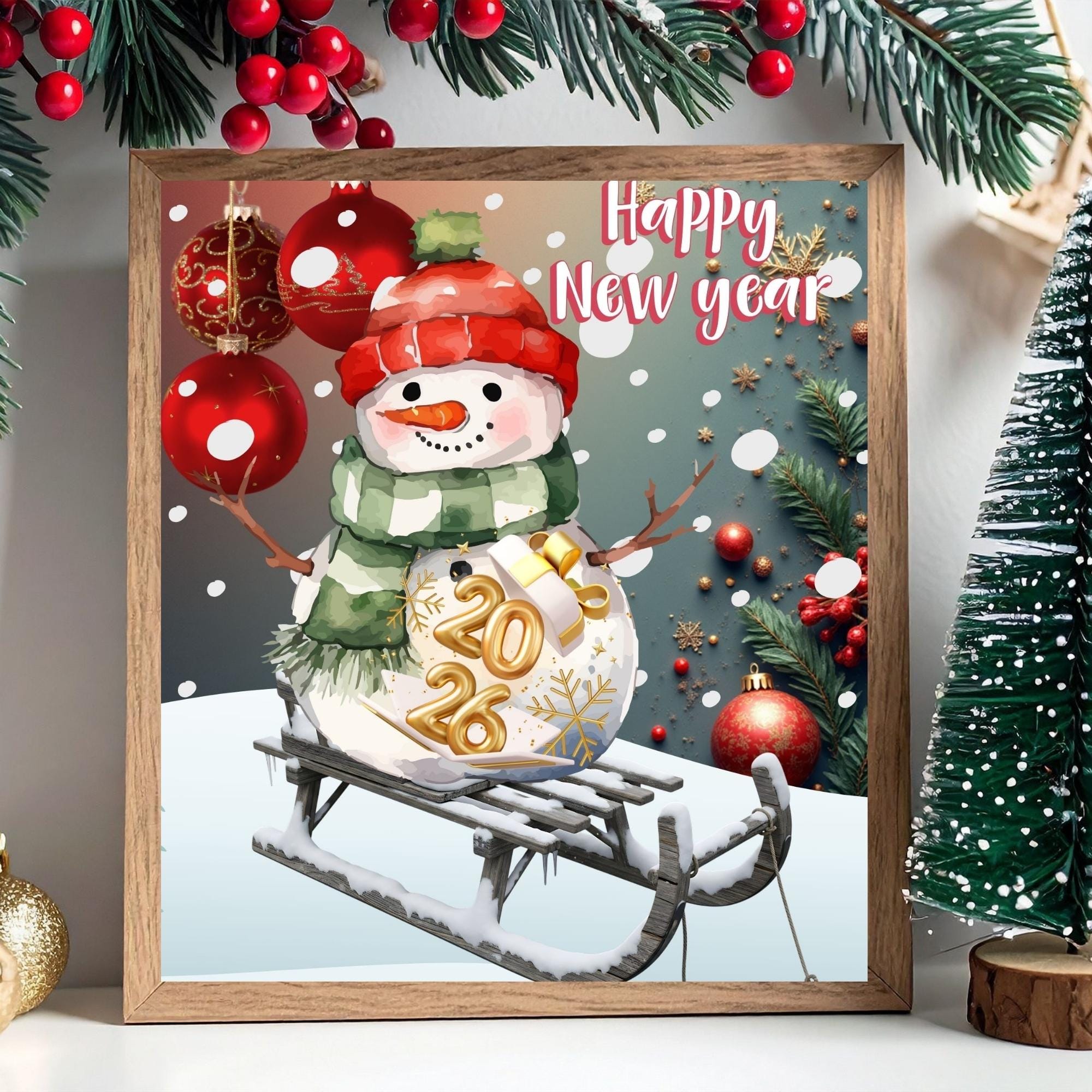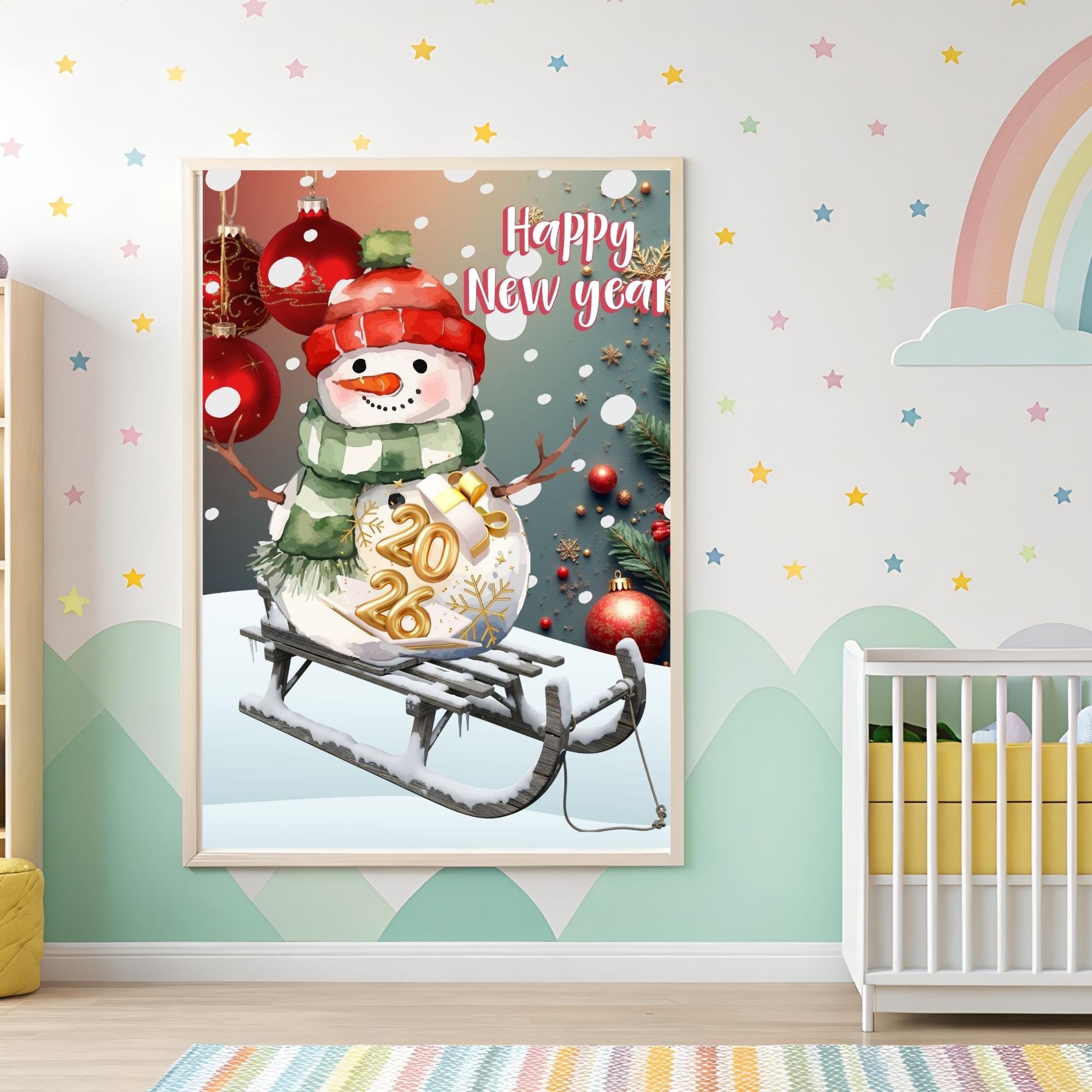 New Year 2026 Snowman Wall Art Printable Holiday Winter Digital Decor