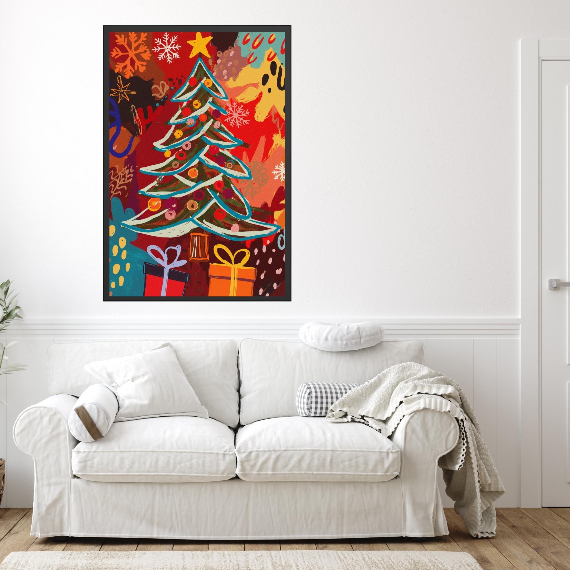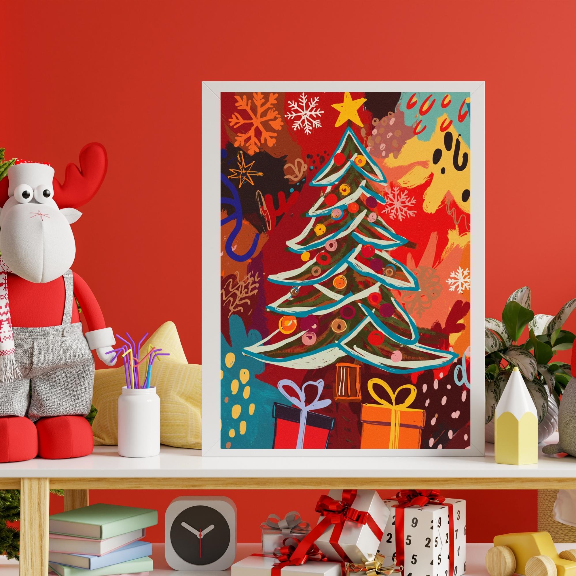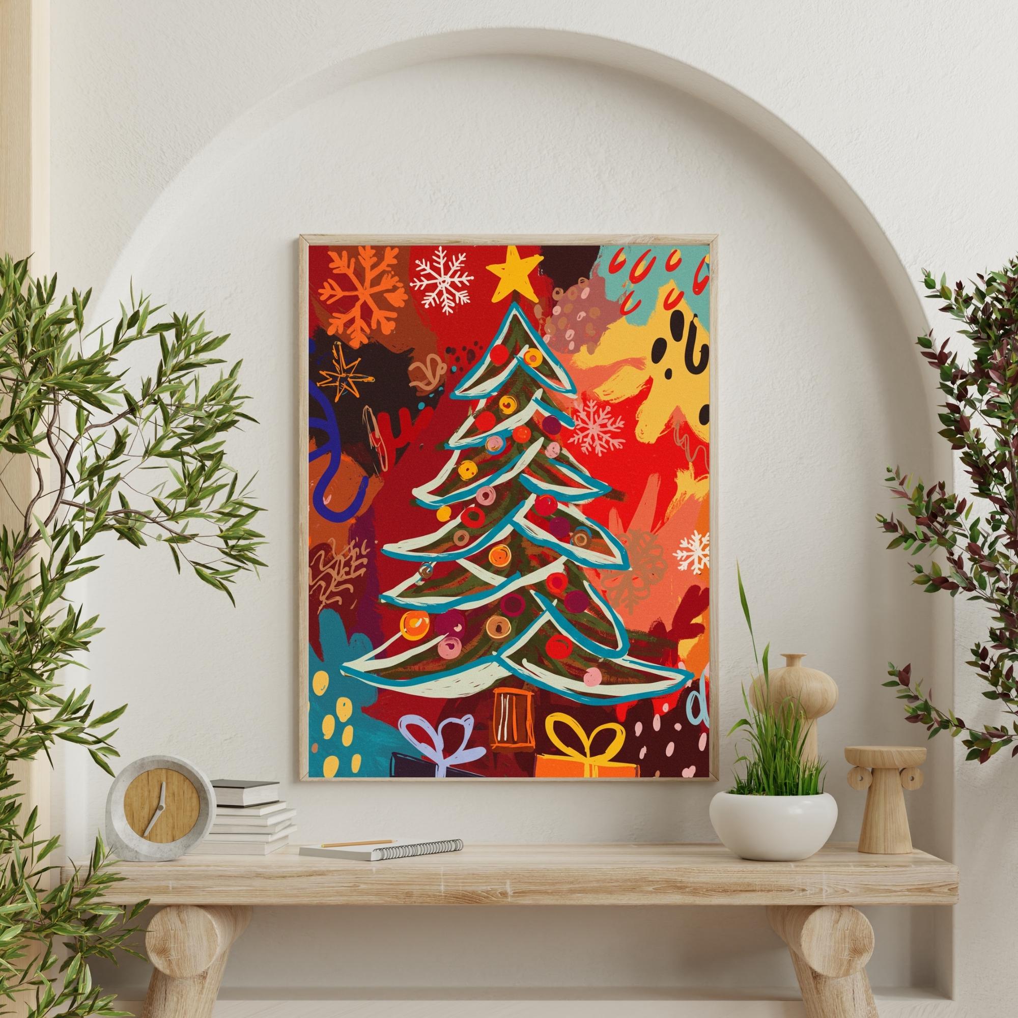 Christmas Tree Wall Art, Festive Holiday Decor,Colorful Print, Rustic Winter Scene Home Decor